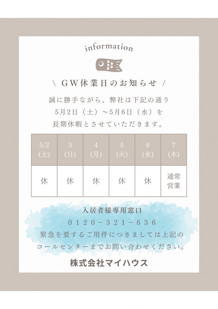 2026.04.26- ゴールデンウィーク休業のお知らせ